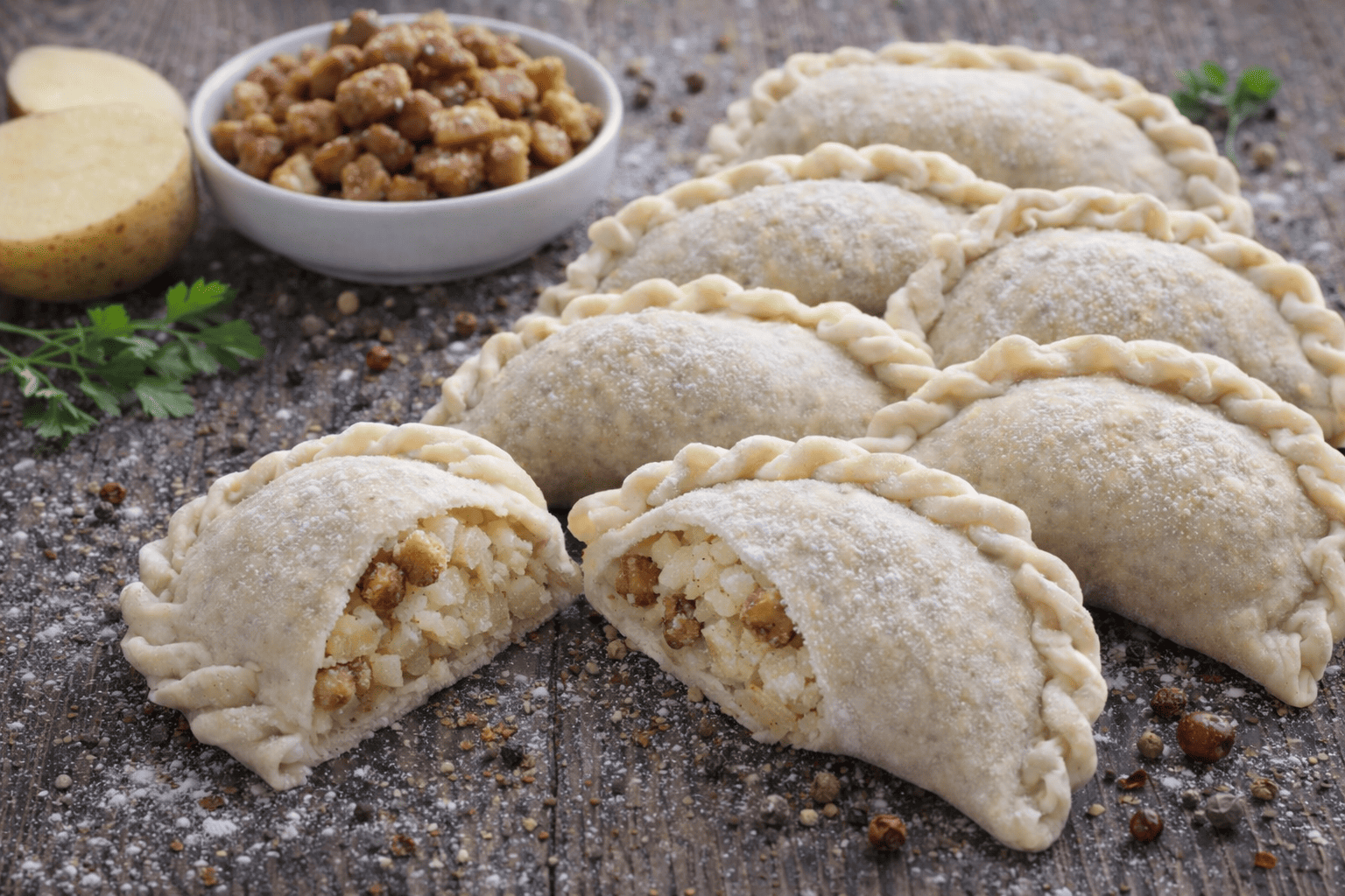 Главная / Полуфабрикаты / Вареники с картофелем и шкварками